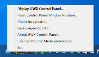 - Right-click the Monitor Mode icon and then click Display GWX Control Panel from the shortcut menu.